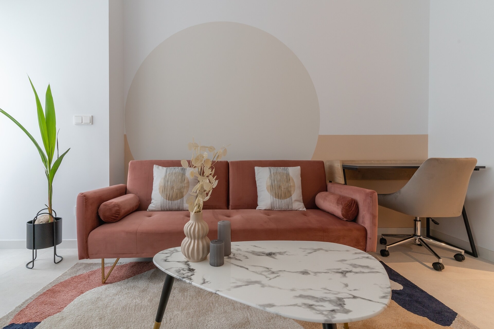 Los huéspedes disfrutarán de una gran experiencia en este este céntrico y moderno apartamento ubicado en un conjunto de 21 apartamentos. El salón cuenta con sofá cama, mesa de comedor, Smart TV y escritorio. La cocina es americana y está totalmente equipada: lavadora, lavaplatos, horno, microondas, vitrocerámica, menaje, etc. El dormitorio cuenta con una cama doble de 190x160cm, y armarios empotrados. El cuarto de baño dispone de ducha y secador de pelo. La red WiFi funciona perfectamente y ofrece cobertura en todo el apartamento, siendo perfecta para trabajar. Además, el apartamento cuenta con aire acondicionado, plancha y tabla de planchar, batidora, tostadora, etc. y se ofrece con ropa de cama y toallas. La entrada en este apartamento es autónoma (mediante el código de acceso que facilitaremos), por lo que se puede llegar en cualquier momento deseado (a partir de la hora de entrada permitida).