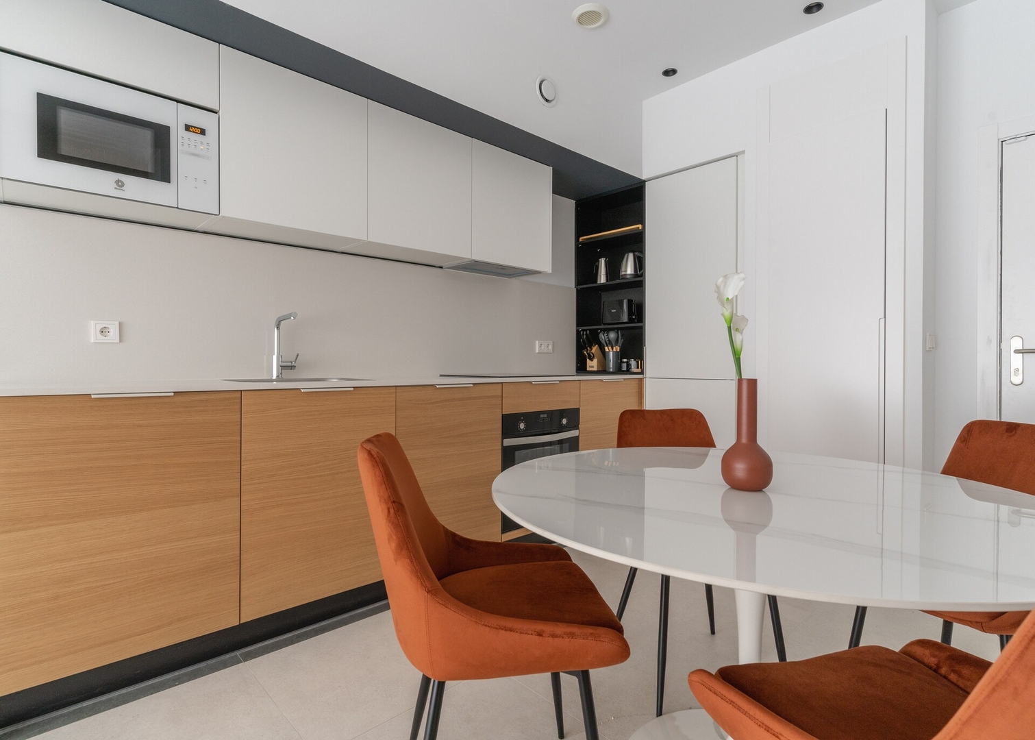 Los huéspedes disfrutarán de una gran experiencia en este este céntrico y moderno apartamento ubicado en un conjunto de 21 apartamentos. El salón cuenta con sofá cama, mesa de comedor y Smart TV. La cocina es americana y está totalmente equipada: lavadora, lavaplatos, horno, microondas, vitrocerámica, menaje, etc. El dormitorio principal cuenta con una cama doble de 190x160cm, armarios empotrados y Smart TV. El cuarto de baño es en suite con ducha y secador de pelo. El segundo dormitorio cuenta con una cama individual de 190x90cm y mesa de escritorio. Además, hay un segundo cuarto de baño completo. La red WiFi funciona perfectamente y ofrece cobertura en todo el apartamento, siendo perfecta para trabajar. Además, el apartamento cuenta con aire acondicionado, plancha y tabla de planchar, batidora, tostadora, etc. y se ofrece con ropa de cama y toallas. La entrada en este apartamento es autónoma (mediante el código de acceso que facilitaremos), por lo que se puede llegar en cualquier momento deseado (a partir de la hora de entrada permitida).