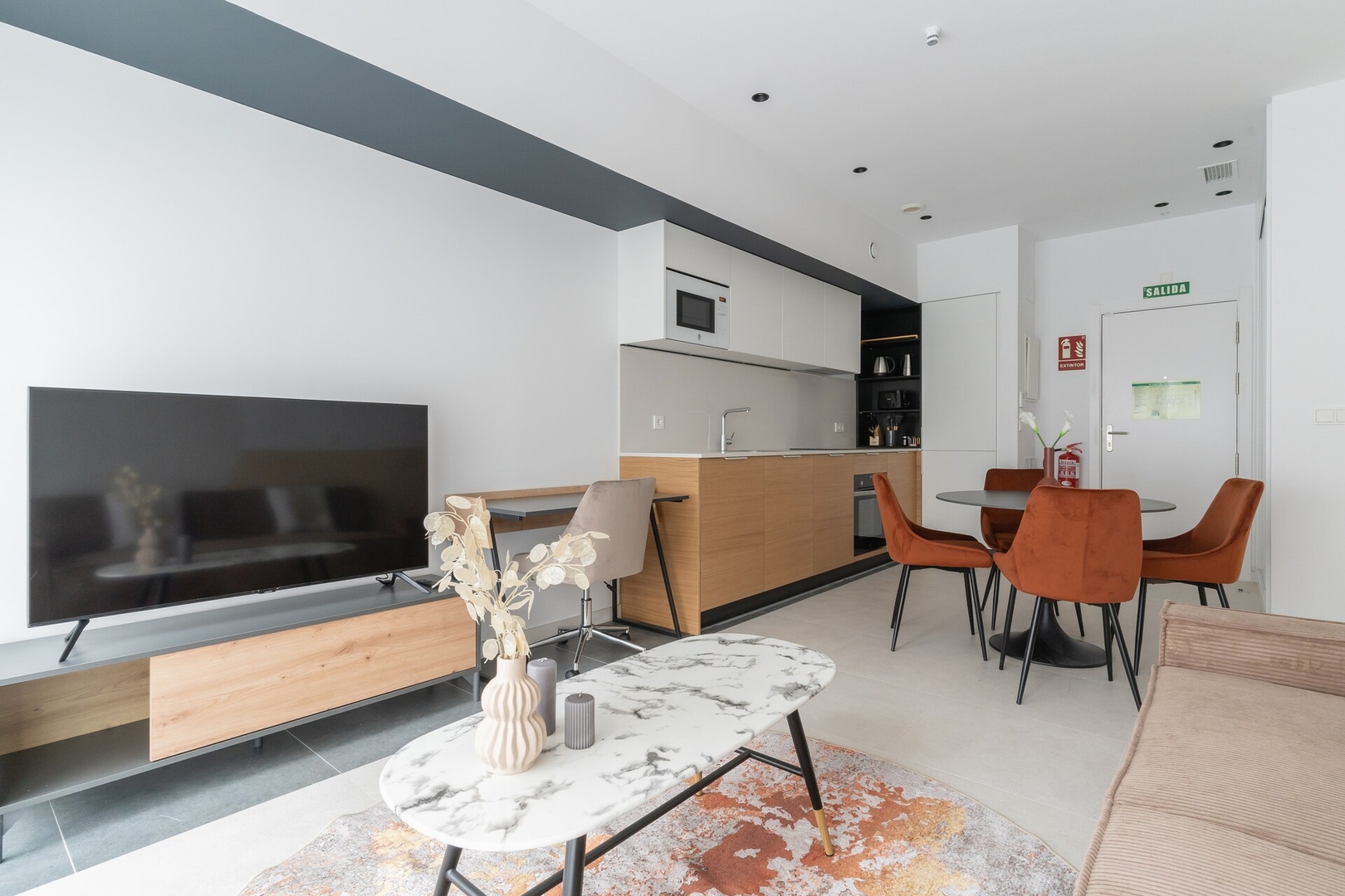Los huéspedes disfrutarán de una gran experiencia en este este céntrico y moderno apartamento ubicado en un conjunto de 21 apartamentos. El salón cuenta con sofá cama, mesa de comedor, Smart TV y escritorio. La cocina es americana y está totalmente equipada: lavadora, lavaplatos, horno, microondas, vitrocerámica, menaje, etc. El dormitorio cuenta con una cama doble de 190x160cm, y armarios empotrados. El cuarto de baño dispone de ducha y secador de pelo. La red WiFi funciona perfectamente y ofrece cobertura en todo el apartamento, siendo perfecta para trabajar. Además, el apartamento cuenta con aire acondicionado, plancha y tabla de planchar, batidora, tostadora, etc. y se ofrece con ropa de cama y toallas. La entrada en este apartamento es autónoma (mediante el código de acceso que facilitaremos), por lo que se puede llegar en cualquier momento deseado (a partir de la hora de entrada permitida).