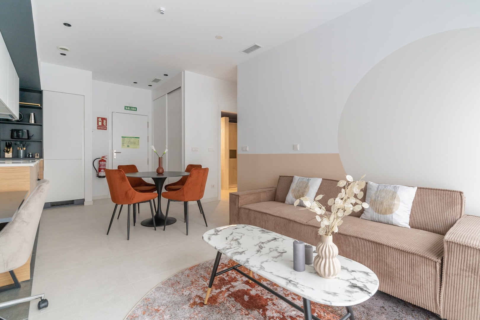 Magnífico apartamento con una superficie de 46m2, ubicado en un complejo de 21 apartamentos turísticos en Prosperidad, una zona residencial con buena comunicación (junto a Av. De América) y muy próximo al Barrio de Salamanca. Se encuentra totalmente reformado y perfectamente equipado, contando con un dormitorio, salón con sofá-cama y escritorio, cuarto de baño y cocina completa. Se trata de un espacio luminoso y con un cuidado diseño y cuenta con wifi, climatización y entrada autónoma.