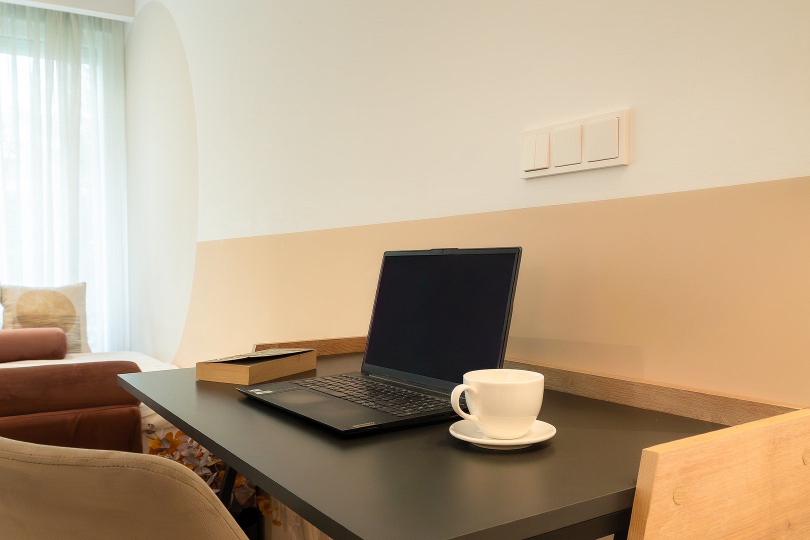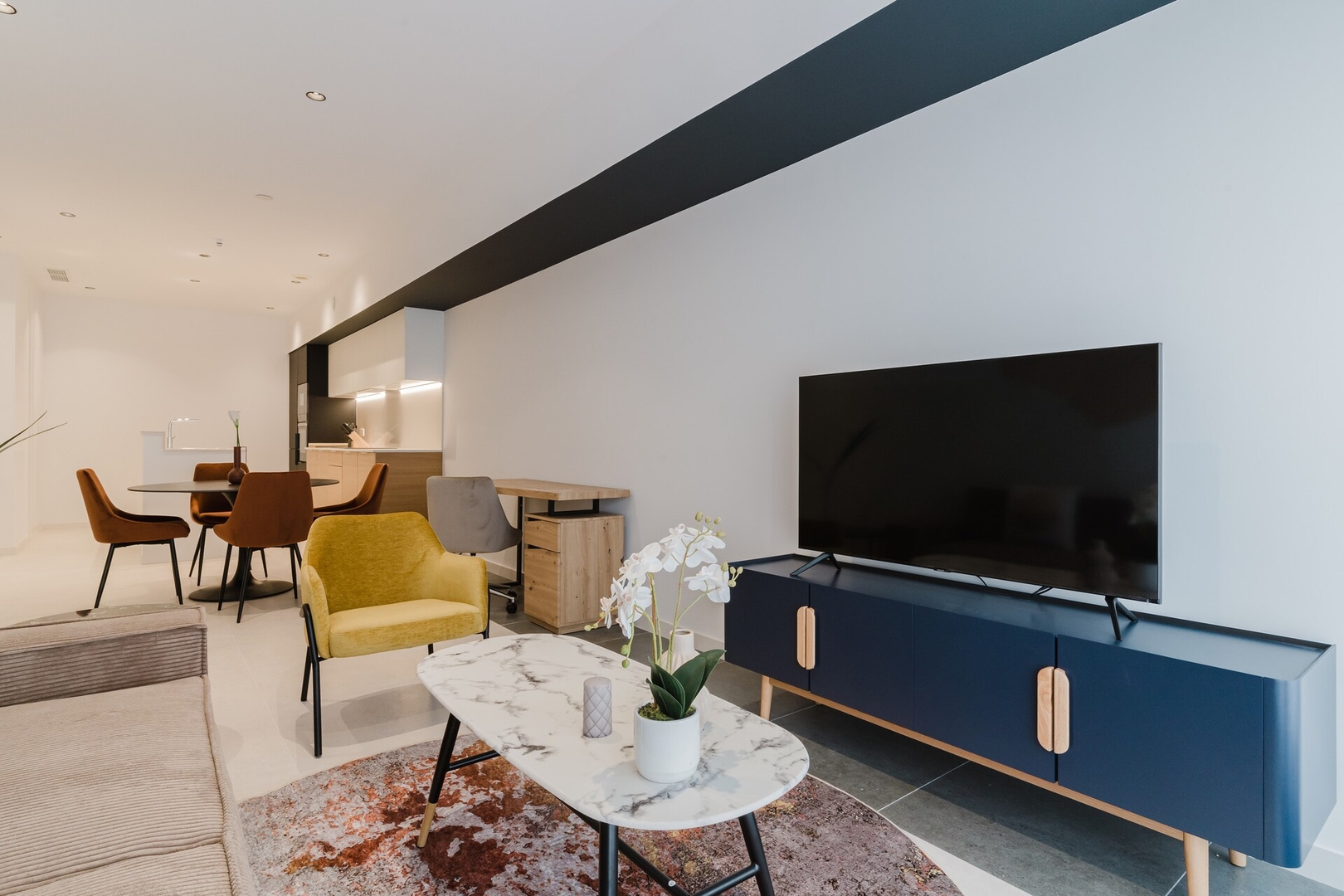 Los huéspedes disfrutarán de una gran experiencia en este este céntrico y moderno apartamento ubicado en un conjunto de 21 apartamentos. El salón cuenta con sofá cama, mesa de comedor, Smart TV y escritorio. La cocina es americana y está totalmente equipada: lavadora, lavaplatos, horno, microondas, vitrocerámica, menaje, etc. El dormitorio cuenta con una cama doble de 190x160cm, y armarios empotrados. El cuarto de baño dispone de ducha y secador de pelo. La red WiFi funciona perfectamente y ofrece cobertura en todo el apartamento, siendo perfecta para trabajar. Además, el apartamento cuenta con aire acondicionado, plancha y tabla de planchar, batidora, tostadora, etc. y se ofrece con ropa de cama y toallas. La entrada en este apartamento es autónoma (mediante el código de acceso que facilitaremos), por lo que se puede llegar en cualquier momento deseado (a partir de la hora de entrada permitida).