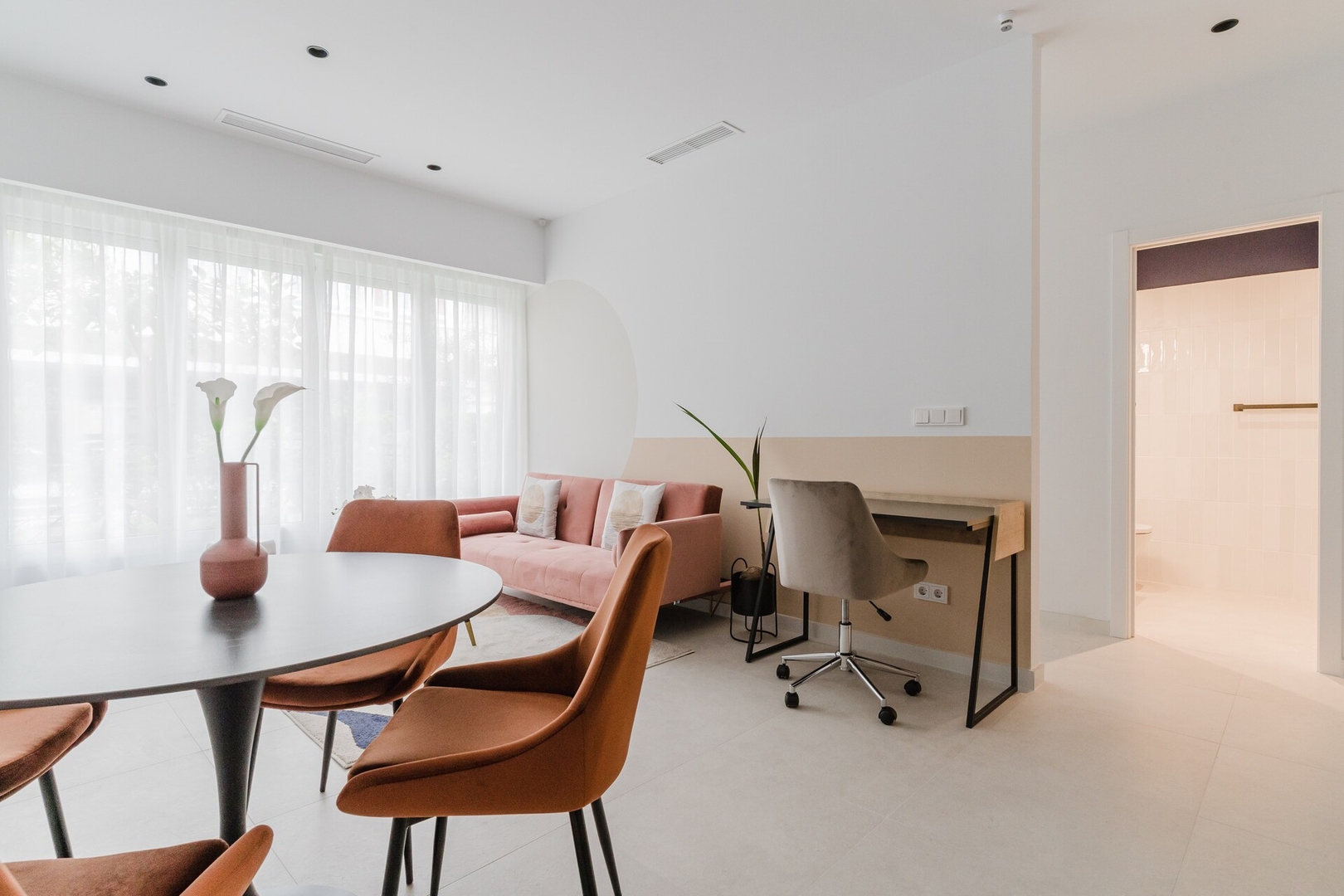 Los huéspedes disfrutarán de una gran experiencia en este este céntrico y moderno apartamento ubicado en un conjunto de 21 apartamentos. El salón cuenta con sofá cama, mesa de comedor, Smart TV y escritorio. La cocina es americana y está totalmente equipada: lavadora, lavaplatos, horno, microondas, vitrocerámica, menaje, etc. El dormitorio cuenta con una cama doble de 190x140cm, y armarios empotrados. El cuarto de baño dispone de ducha y secador de pelo. La red WiFi funciona perfectamente y ofrece cobertura en todo el apartamento, siendo perfecta para trabajar. Además, el apartamento cuenta con aire acondicionado, plancha y tabla de planchar, batidora, tostadora, etc. y se ofrece con ropa de cama y toallas. La entrada en este apartamento es autónoma (mediante el código de acceso que facilitaremos), por lo que se puede llegar en cualquier momento deseado (a partir de la hora de entrada permitida).