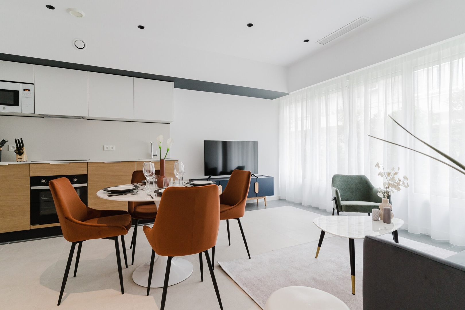 Los huéspedes disfrutarán de una gran experiencia en este este céntrico y moderno apartamento ubicado en un conjunto de 21 apartamentos. El salón cuenta con sofá cama, mesa de comedor y Smart TV. La cocina es americana y está totalmente equipada: lavadora, lavaplatos, horno, microondas, vitrocerámica, menaje, etc. El dormitorio principal cuenta con una cama doble de 190x160cm, armarios empotrados y Smart TV. El cuarto de baño es en suite con ducha y secador de pelo. El segundo dormitorio cuenta con una cama individual de 190x90cm y mesa de escritorio. Además, hay un segundo cuarto de baño completo. La red WiFi funciona perfectamente y ofrece cobertura en todo el apartamento, siendo perfecta para trabajar. Además, el apartamento cuenta con aire acondicionado, plancha y tabla de planchar, batidora, tostadora, etc. y se ofrece con ropa de cama y toallas. La entrada en este apartamento es autónoma (mediante el código de acceso que facilitaremos), por lo que se puede llegar en cualquier momento deseado (a partir de la hora de entrada permitida).